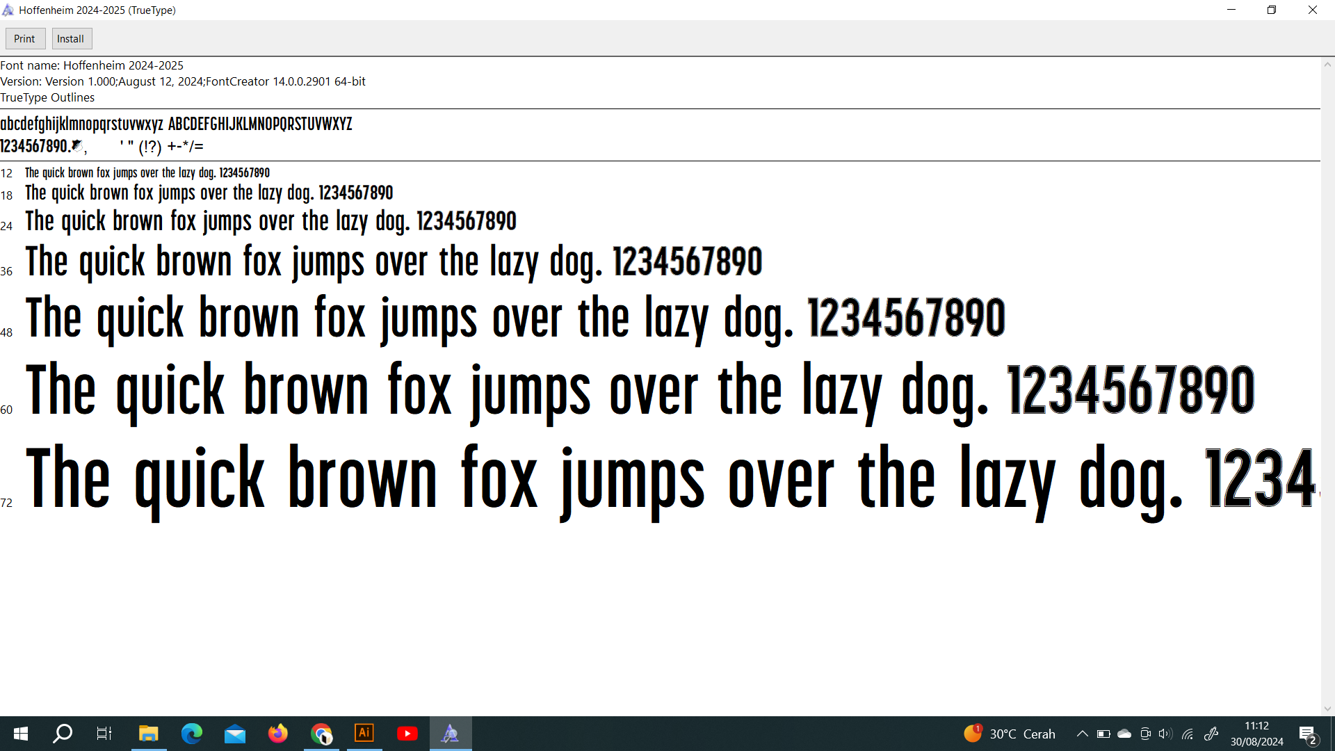 In our shop, you will get products in the form of TTF/OTF format fonts. You only need to install this font for your nameset design/printing needs for your jersey. If you need another custom jersey font, contact me: rossmcewan85@gmail.com