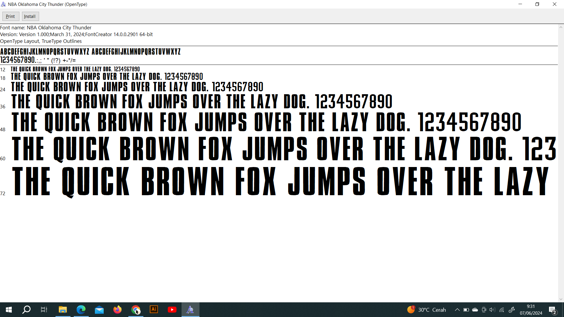 NBA Oklahoma City Thunder 2023 Font