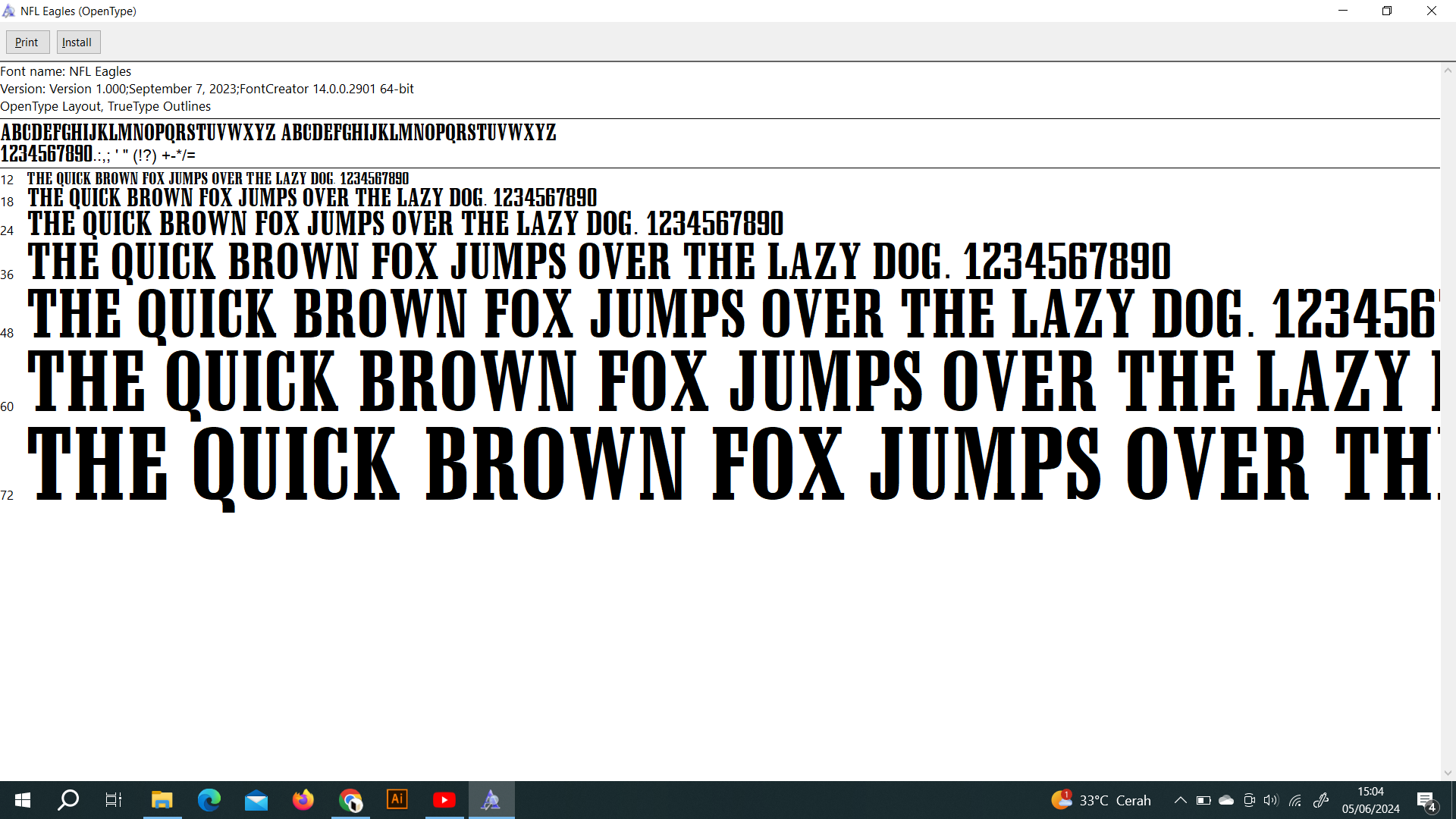 In our shop, you will get products in the form of TTF/OTF format fonts. You only need to install this font for your nameset design/printing needs for your jersey. If you need another custom jersey font, contact me: rossmcewan85@gmail.com